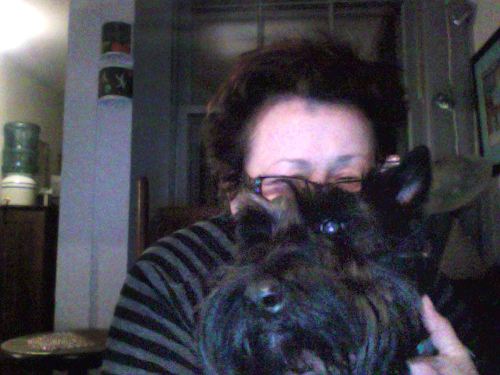 Photo of Dara Wier, James Tate, Guy Pettit & Emily Pettit’s beloved Scottie. She goes by Maggie, Maggy, and Magpie, variously, and is “responsible for this poem.”
