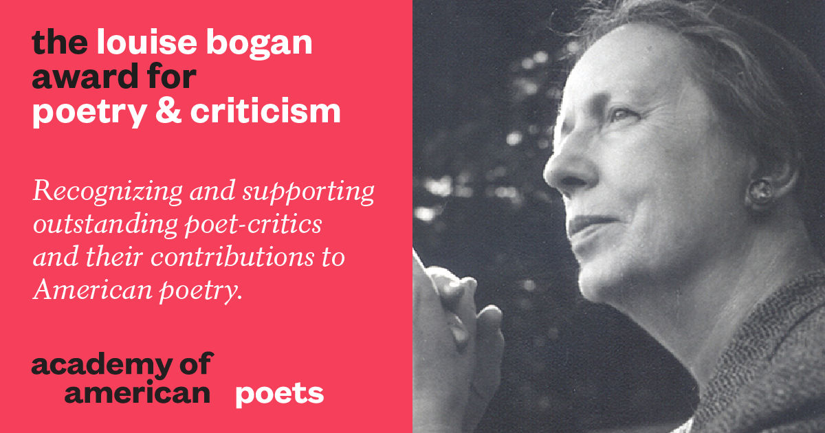 “Louise Bogan was a model both as one of our country’s great poets and also equally as a critic of poetry—part of a long and necessary tradition,” said Carolyn Forché, Chancellor of the Academy of American Poets. “She was dedicated to illuminating the experience of reading a poem and teasing out the interstices of music and meaning. We are fortunate indeed that the Louise Bogan Charitable Trust has chosen to honor this legacy by bequeathing deserved recognition to poets who are practicing critics.”