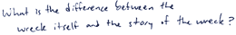 However, it is not necessary to determine more specifically what the wreck might be. There is no need to reduce the poem to feminine identity and gender stereotypes, although clearly that element is present. There also is no need to limit the poem to a piece about artistic self-discovery. The poem doesn’t have an "answer," and the result of personal inquiry or shared inquiry should only be to narrow and clarify some likely thematic possibilities, not to eliminate all conflict and ambiguity.