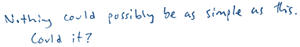 This poem can be infuriating because on one hand it appears so guileless and simplistic. The problem is that you can’t take anything for granted, not even simplicity.